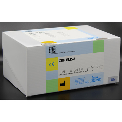The CRP ELISA kit is a enzyme immunoassay intended for the quantitative determination of C-reactive protein in plasma, serum, stool, dried blood spots, and urine.